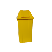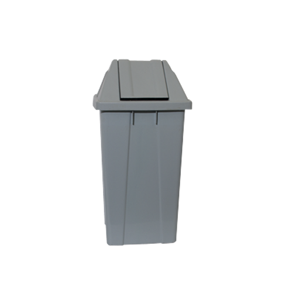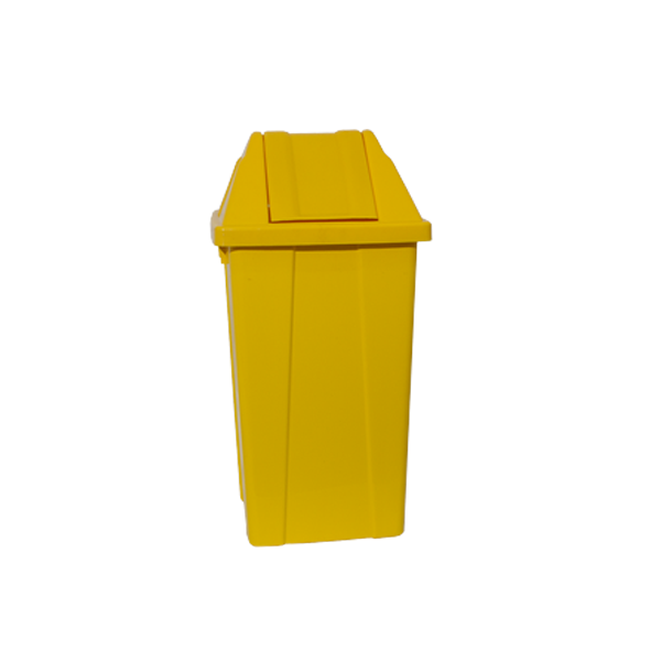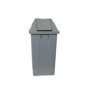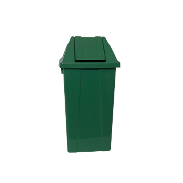 Lixeira com tampa basculante confeccionadas em plástico polipropileno (PP), copolímero com proteção U.V . O aditivo é para U.V do pigmento e matéria prima.